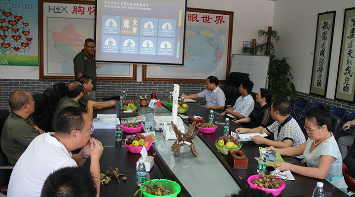 匯興智造物控中心常經理向領導們介紹了公司1999年以來的發展歷程,同時對“機器換人“的行業機遇,匯利興能夠提供智能高端的一站式服務方案,更為生產制造帶來“3+1”的優勢(多+快+好+省=一站式服務),尤其對匯利興(后改名:匯興智造)在發展取得喜人業績時,不忘回饋社會,組織匯利興(后改名:匯興智造)義工團定期前往楊屋村6隊隊館開展敬老感恩活動進行匯報。