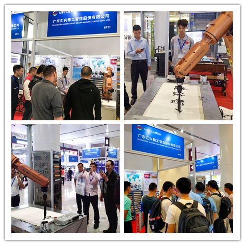 跟以往的展會(huì)一樣,我們的書法機(jī)器人吸引了眾多參觀者駐足圍觀,只見書法機(jī)器人現(xiàn)場揮灑筆墨,書寫出蒼勁有力的“道法智然”、“馬到功成”、“擼起袖子加油干”等,圍觀者紛紛拿起手機(jī)拍照錄視頻,或是夸口稱贊,同時(shí)還跟我們的業(yè)務(wù)人員熱情合影留念,機(jī)器人的“書法功底”可見一斑。