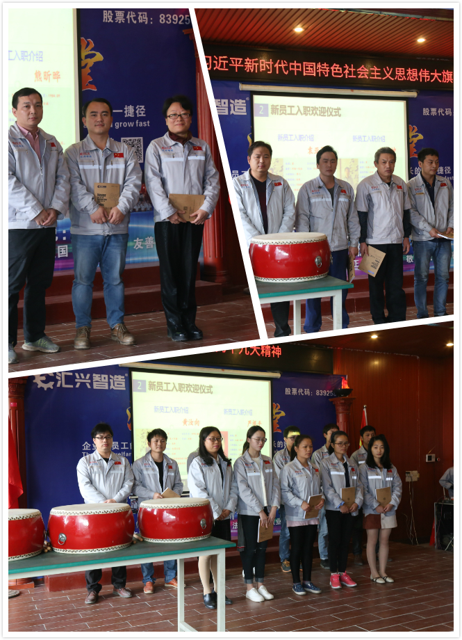 匯興智造歷經17年風雨的洗滌,更是活力四射、朝氣蓬勃,這離不開人才的引進、新鮮血液的注入。會議開啟第二個議程——新員工入職歡迎儀式。新員工代表發表了感想:匯興智造是一個溫暖的大家庭,匯興人所從事的事業有廣闊的發展前景,公司領導大膽睿智、有戰略眼光,公司員工團結勤奮、干得熱火朝天。匯興智造有偉大的夢想,匯興人有崇高的追求,兩者結合,必將創造奇跡!
