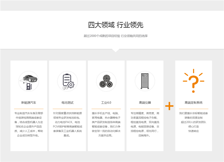 擅長手機生產線、電腦、家用電器、熱水器等電子類產品研發制造各種高端智能成套設備,我們力爭做全球一流的自動化解決方案供應商。