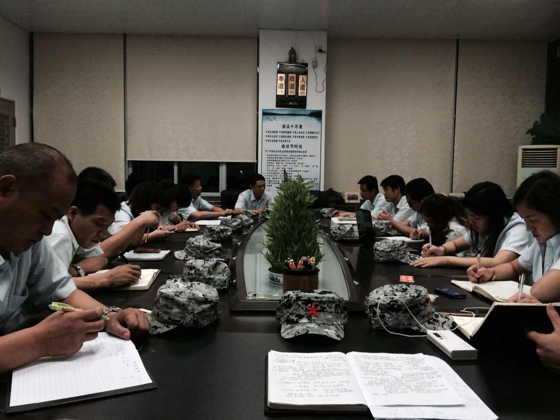 2014年6月14日下午,匯興智造董事長鐘輝帶領公司核心高管干部走訪了三個企業參觀學習,當晚回來后,7點半會議室里召開第二季度總結大會。會議上,各位總結分享了下午時走訪企業時的所感所想,也總結了這一季度的好與壞。