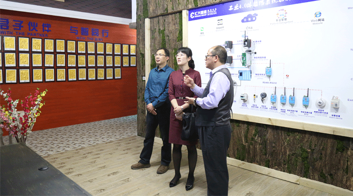 2017年3月22日,江西省興國縣人民政府副縣長張聰華、縣檢察院檢察長王井平一行蒞臨廣東匯興精工智造股份有限公司(股票代碼839258)參觀指導。匯興智造董事長鐘輝代表全體員工對貴賓的到訪表示熱烈歡迎,并全程陪同張副縣長一行參觀智能裝備體驗館,演示了如何將物聯網、傳感技術、大數據、工業機器人等技術融入到傳統生產制造中,賦予傳統生產更多智能化元素,更好滿足客戶個性化定制和柔性化生產的需求。