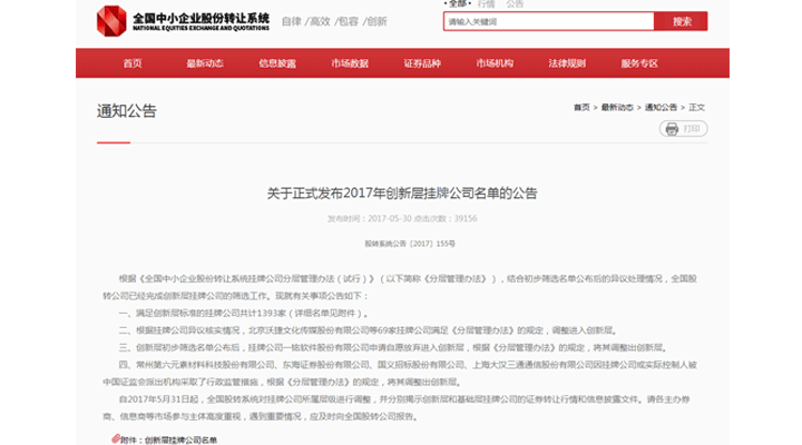2017年創新層掛牌公司名單公告