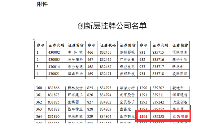 廣東匯興精工智造股份有限公司自2016年12月30日成功掛牌新三板后又傳來一大喜訊,5月30日,全國中小企業股份轉讓系統(以下簡稱“全國股轉系統”)公布了2017年創新層掛牌公司名單,廣東匯興精工智造股份有限公司(股票代碼:839258)成功從全國一萬余家新三板掛牌企業中脫穎而出,躋入新三板“優等生”行列。