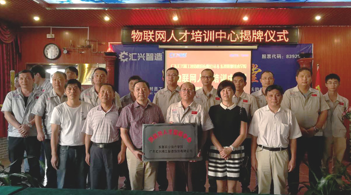 2017年9月27日下午, 東莞職業(yè)技術(shù)學(xué)院副院長(zhǎng)楊云奇,計(jì)算機(jī)工程系主任胡選子博士,藝術(shù)設(shè)計(jì)系主任何鳳梅博士,計(jì)算機(jī)系曹文梁教授等專(zhuān)家人員一行蒞臨廣東匯興精工智造股份有限公司(股票代碼:839258)考察調(diào)研并舉行“物聯(lián)網(wǎng)人才培訓(xùn)中心“基地揭牌儀式。匯興智造董事長(zhǎng)鐘輝,匯興中德智能制造研究院院長(zhǎng)李康順教授熱情接待了調(diào)研組一行。