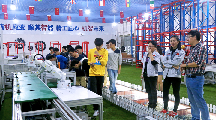 在工業4.0體驗館,同學們圍著設備展開了熱烈的討論。唐教授看著興致勃勃的學生,欣慰地感嘆道:“非常感謝匯興給我們提供了這么一個機會,讓同學們能夠理論聯系實際,感知到在學校學習的知識是可以轉化為生產力的。”
