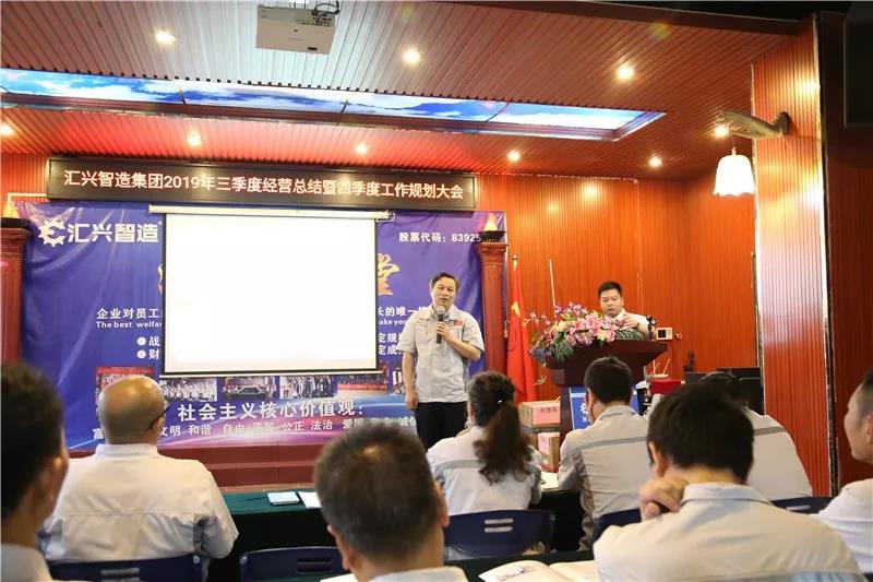 9月7日上午,廣東匯興精工智造股份有限公司在東莞總部隆重舉行2019年第三季度經營總結暨第四季度工作規劃大會。匯興智造東莞總部、東莞分公司、深圳辦事處、順德辦事處全體同仁齊聚匯興學院,總結2019年第三季度工作經驗,為2019年最后一季度的沖刺工作做籌劃,竭盡全力,拼搏奮斗。