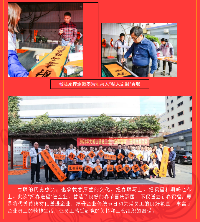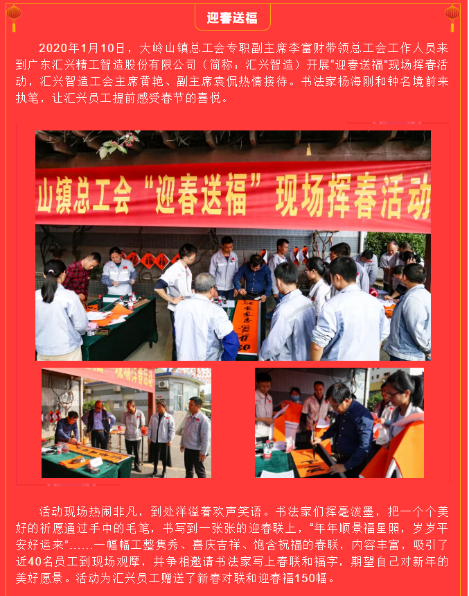 翰墨飄香送春聯(lián),文化進企暖人心——鎮(zhèn)總工會來匯興開展“迎春送福”現場揮春活動