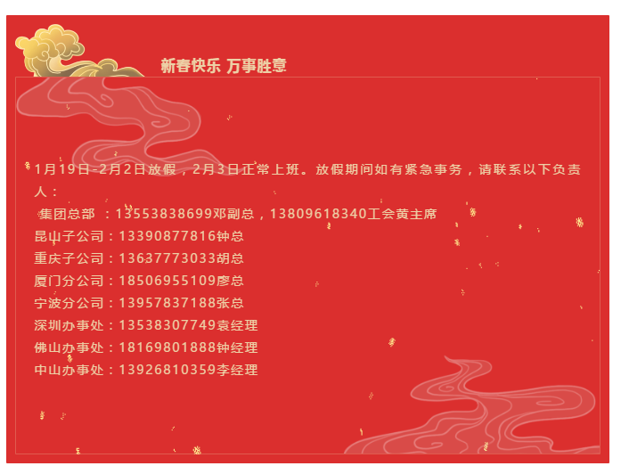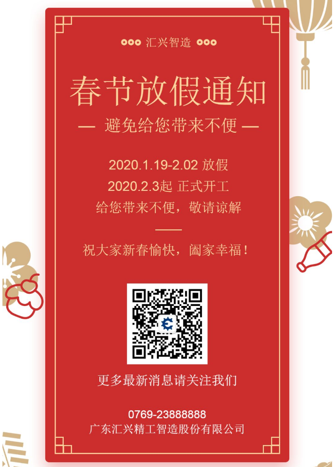 匯興智造丨春節放假通知!