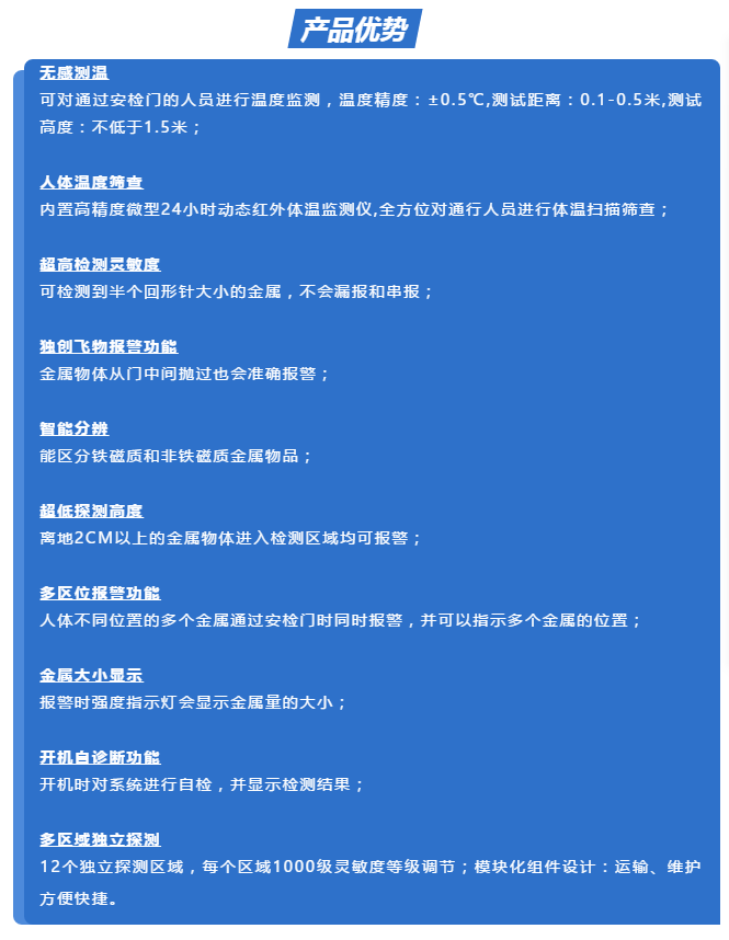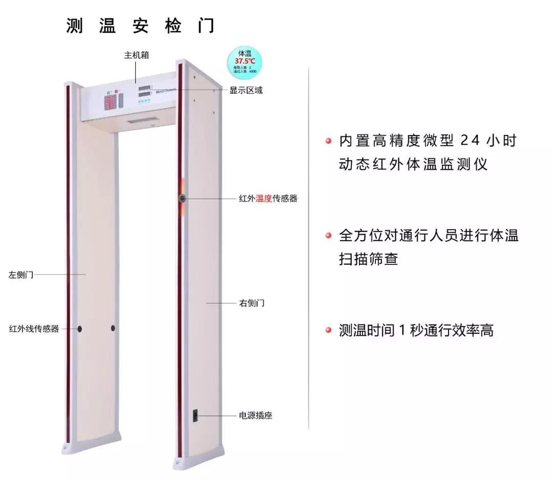 匯興智造人體測(cè)溫安檢門將集紅外測(cè)溫和金屬檢測(cè)為一體化,可對(duì)通過安檢門的人員進(jìn)行溫度測(cè)試,如若超過安全溫度閾值將聯(lián)動(dòng)安檢門聲光報(bào)警,有效對(duì)人員進(jìn)行篩查并建立首道防線。